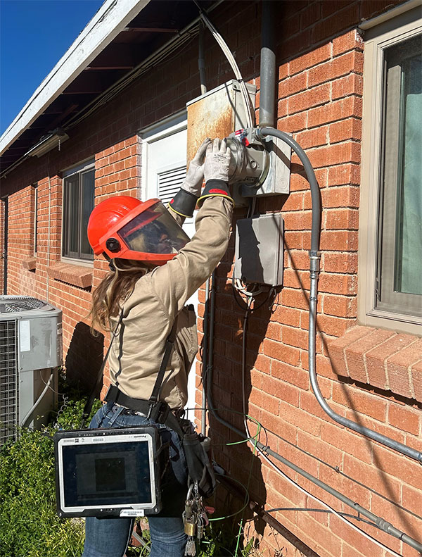 Anything that has to do with a single-phase meter – that’s me. When a meter must be installed at a new house, when a customer is moving to a new house, I am the technician who installs, connects, and disconnects the electrical meter. When customers want to get solar panels on their home, I am the last employee that makes sure that everything is wired properly and installs the solar meter. Occasionally, I investigate electrical diversions when they are found and reported. I started as a meter reader in 1997 and started working with TEP through Southwest Energy Solutions in 2001.